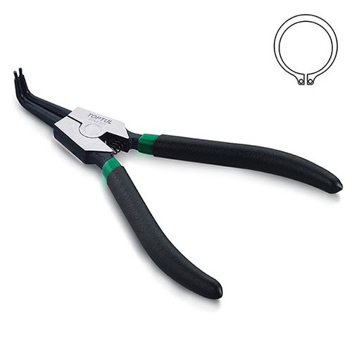 На сегодняшнее время в мире разработано новаторами и произведено огромнейшее количество всевозможного инструментария по диагностике и ремонту автотранспорта. Начиная от простой отвёртки и заканчивая новейшими электронными приборами высочайшей технической точности. У каждого мастера по ремонту автомобиля в своём личном арсенале должен находится инструмент для снятия и установок стопорных колец. Так как без этого инструмента снять или установить стопорные кольца невозможно. Стопорные кольца распространены очень широко и используются в узлах где присутствуют соединения валов с отверстиями (наиболее часто при установке подшипников). Для такого вида работы с деталями необходимо приобрести такой вид инструмент, как круглогубцы для стопорных колец. Подобные прецизионные инструменты, предназначенные для выполнения деликатной работы. Круглогубцы для стопорных колец можно разделить на две группы: модели, работающие на сжим (для извлечения внутреннего стопорного кольца) и на разжим (для извлечения наружного стопорного кольца). | Круглогубцы для снятия стопорных колец имеют наконечники двух видов, прямой и изогнутой формы. Выбирая круглогубцы для стопорных колец следует обратить свое пристальное внимание на прочность губок. Ведь инструмент изготовленный из некачественного материала быстро приходит в непригодность. В изготовлении инструментария производства TOPTUL (Тайвань) используются многокомпонентные марки стали с применением стойкого к окислению сплава хром- ванадия. Выскальзыванию инструмента из рук препятствует обрезиненное покрытие ручек, что способствует значительному их комфортному использованию.