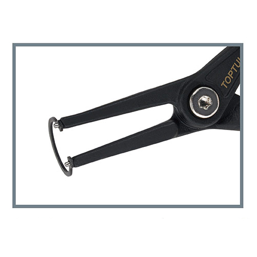 Съемник стопорных колец TOPTUL DCBB1307 - мощная усиленная модель для интенсивной эксплуатации. Прочные наконечники изготовлены из подшипниковой стали. Корпус изготовлен из инструментальной стали (кованый, с закалкой и отпуском). Специальная тонкая головка круглогубцев позволяет легко добираться к кольцам. Большая контактная поверхность и легко устанавливаемые наконечники предотвращают деформацию стопорных колец.