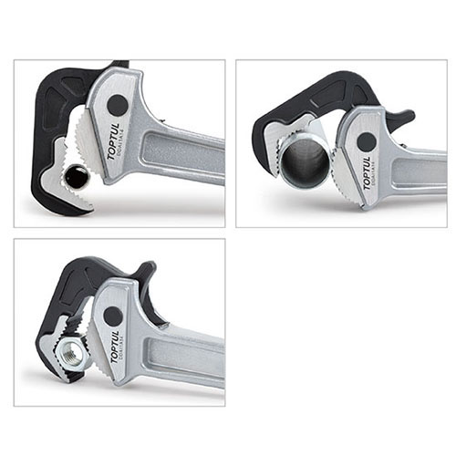 4. Три точки зажима челюстей: Дизайн с тремя точками зажима помогает обеспечить наилучший захват и крутящий момент при работе с разными размерами труб и деталей.