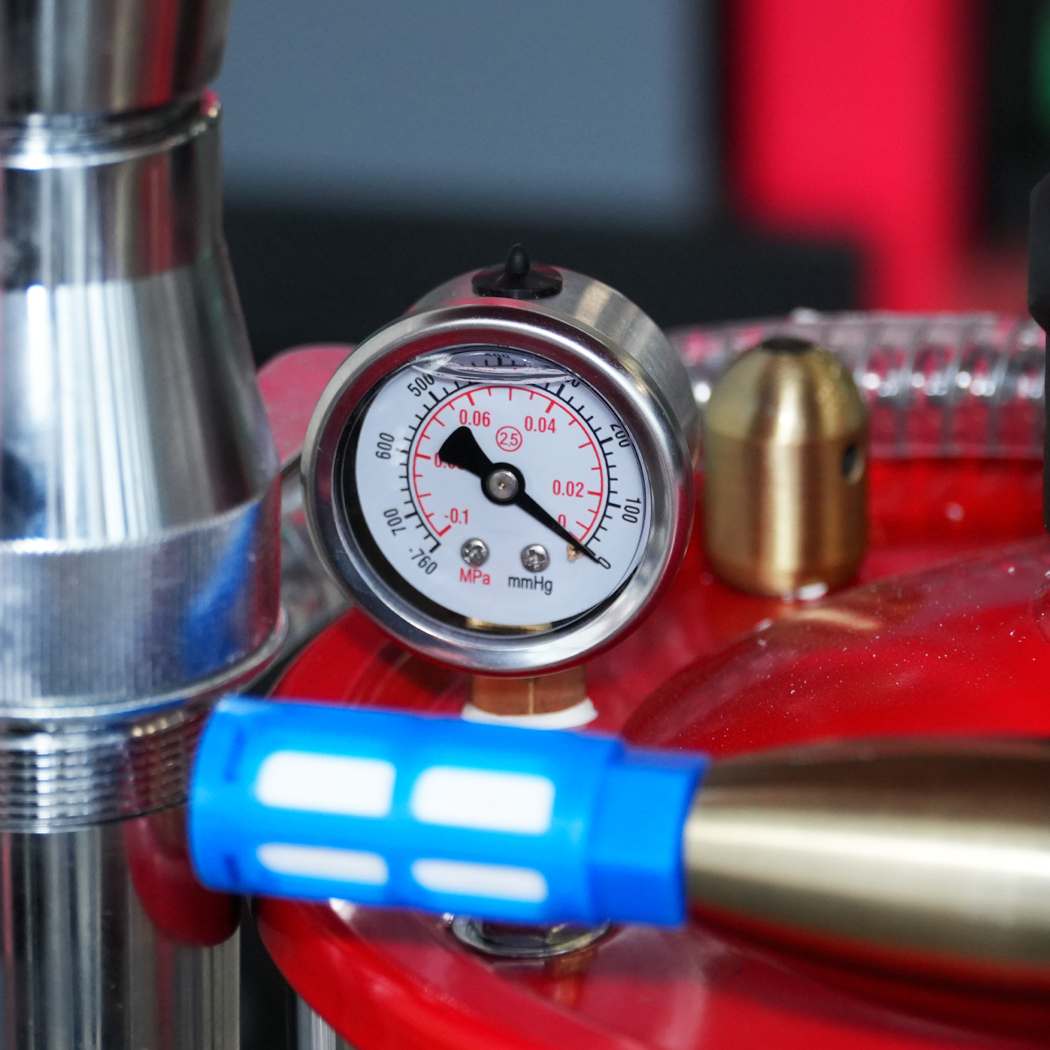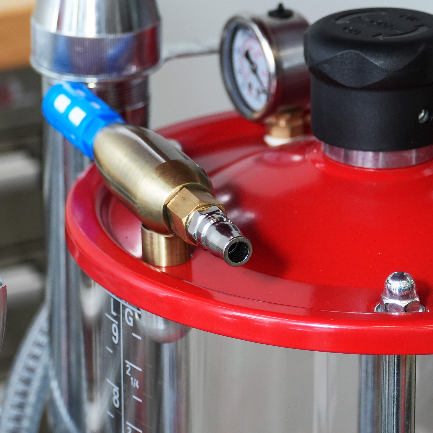 - Двойные предохранительные клапаны на баке и мерной колбе обеспечивают безопасность пользователя и оборудования при работе под давлением.