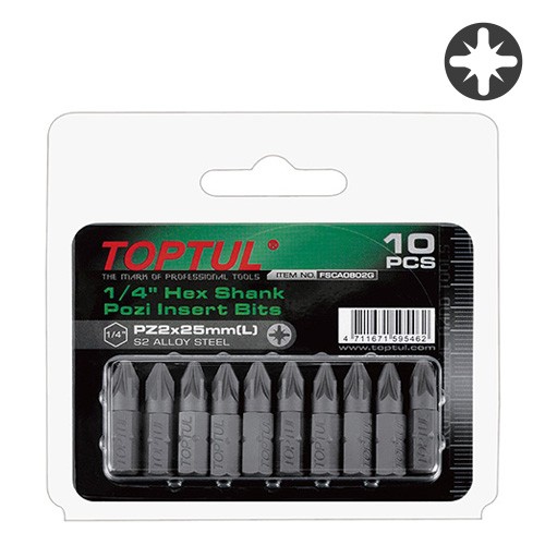 Набор бит 1/4" L25мм PZ2 10ед. на блистере TOPTUL FSCA0802G