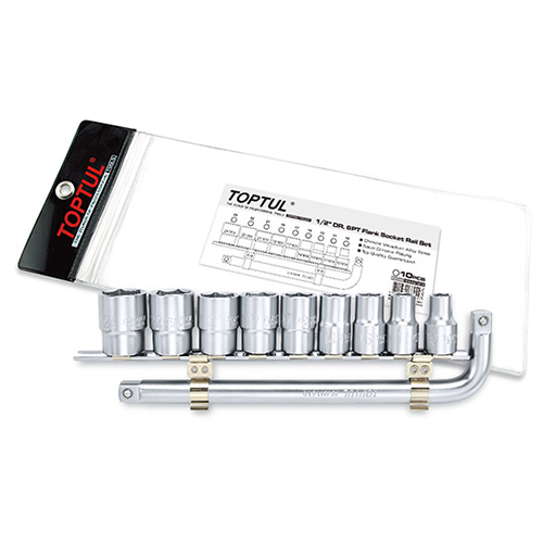 Набор головок 1/2" 10-24мм на планке + Г-обр. вороток TOPTUL GAAG1010