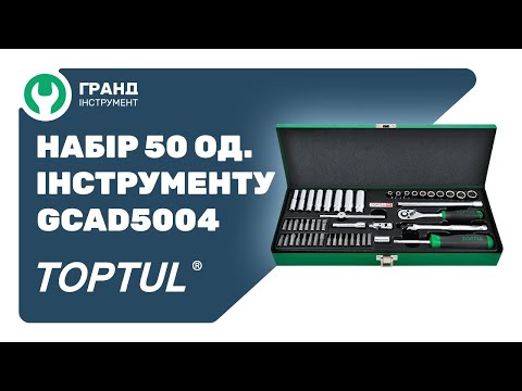 Набор включает в себя: 10 торцевых 12-гранных головок от 5 до 13 мм, 8 длинных головок от 6 до 13 мм, быстросменный держатель бит, удлинитель, кардан, вороток с плавающей головкой, вороток отвертку, вороток с шарниром и трещотку на 36 зубцов.