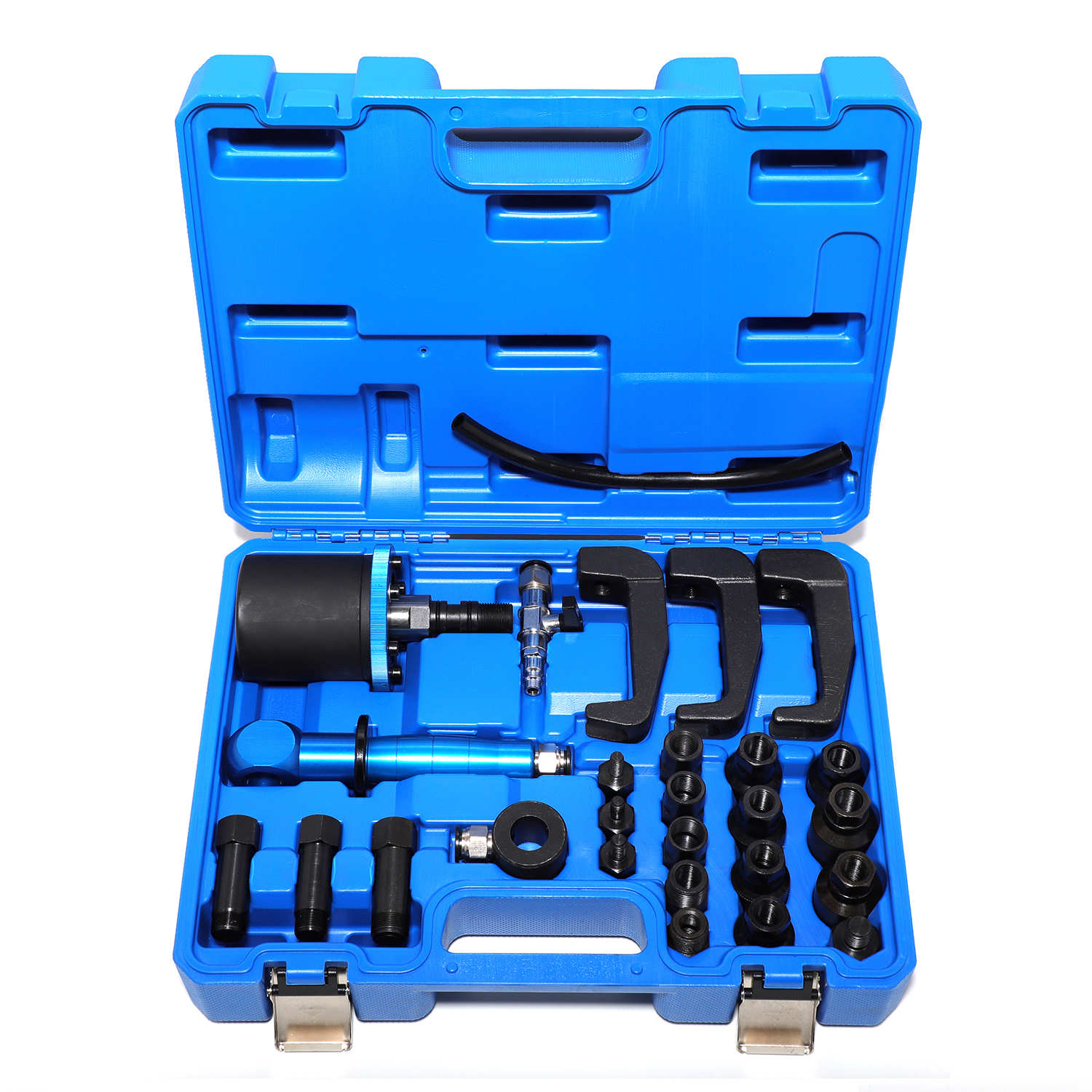Набор для снятия топливных форсунок пневматический G.I.KRAFT GI-03-0001 — профессиональный инструмент, предназначенный для быстрого и эффективного демонтажа топливных форсунок в дизельных двигателях. Благодаря использованию сжатого воздуха он позволяет легко вытаскивать даже закоксованные или прикипелые форсунки без повреждения головки блока цилиндров, что значительно упрощает процесс ремонта.