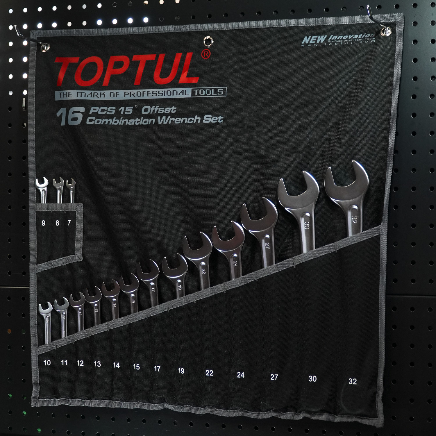 Набор ключей комбинированных 16 шт. 7,8,9,10,11,12,13,14,15,17,19,22,24,27,30,32 Hi-Performance в черном чехле