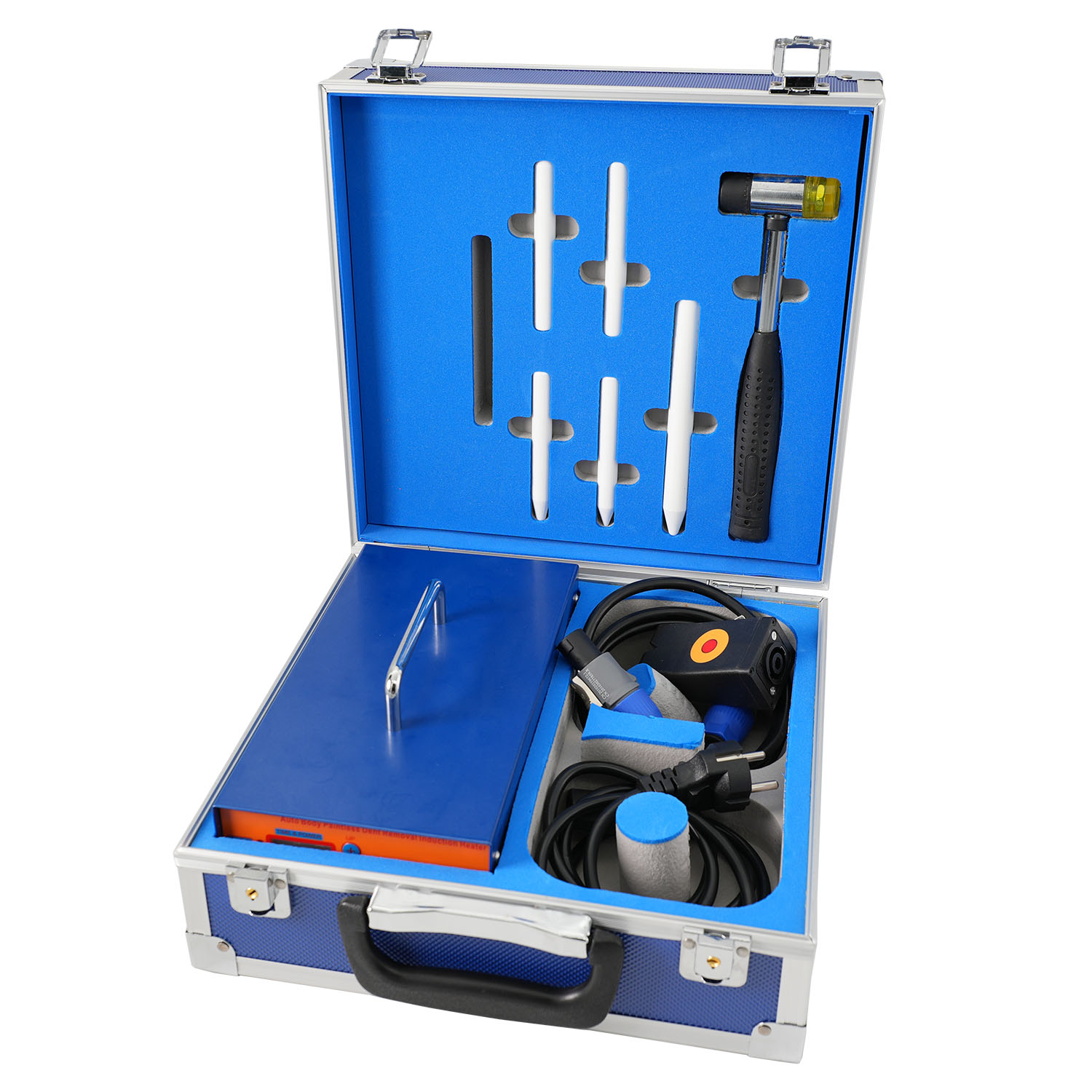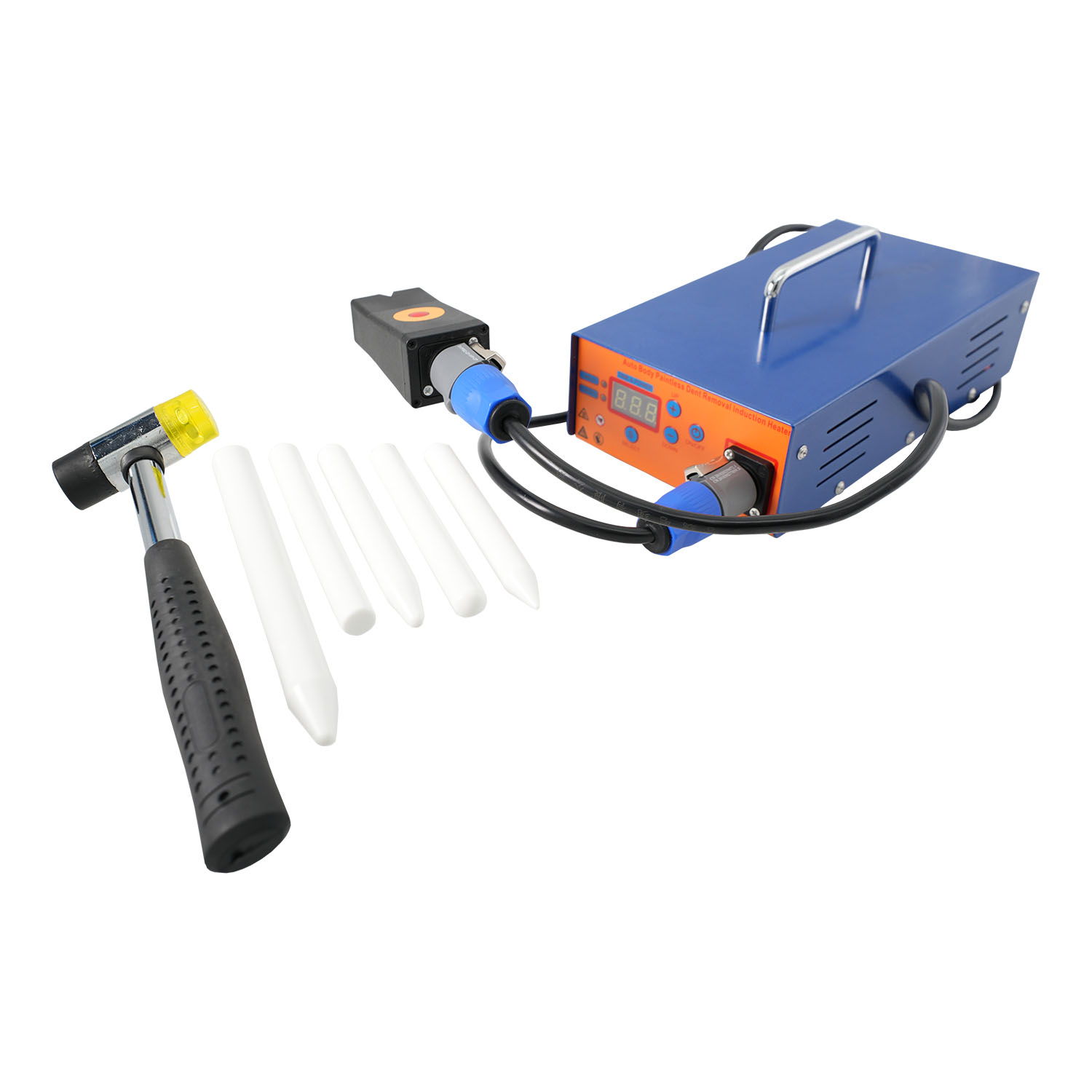Этот индукционный нагреватель является незаменимым инструментом для профессионалов, занимающихся ремонтом автомобилей, позволяя легко и эффективно исправлять вмятины без риска повреждения внешнего вида транспортного средства.