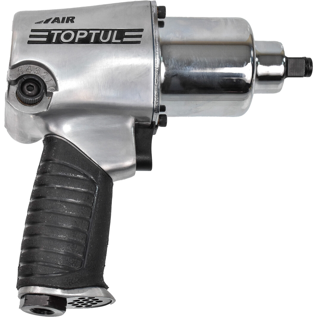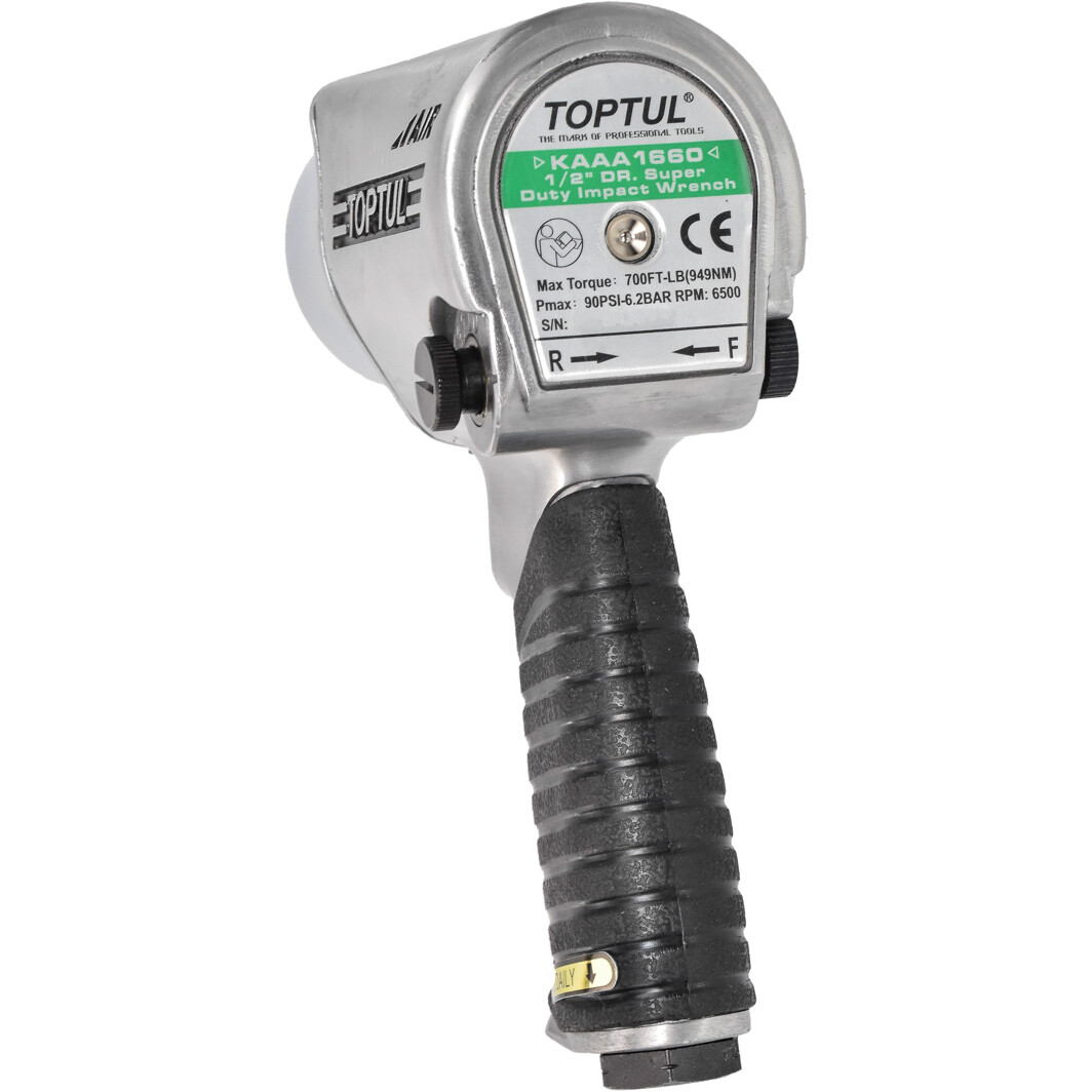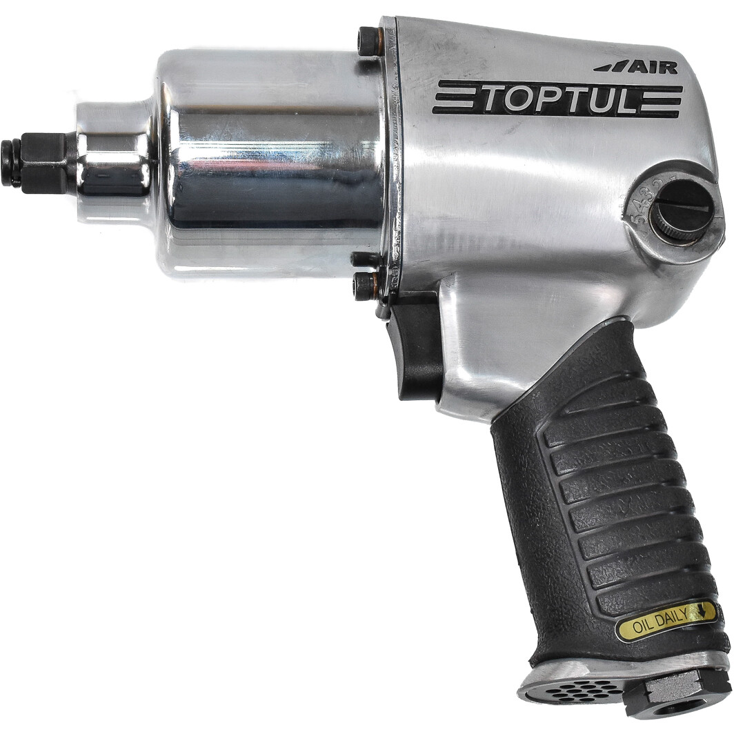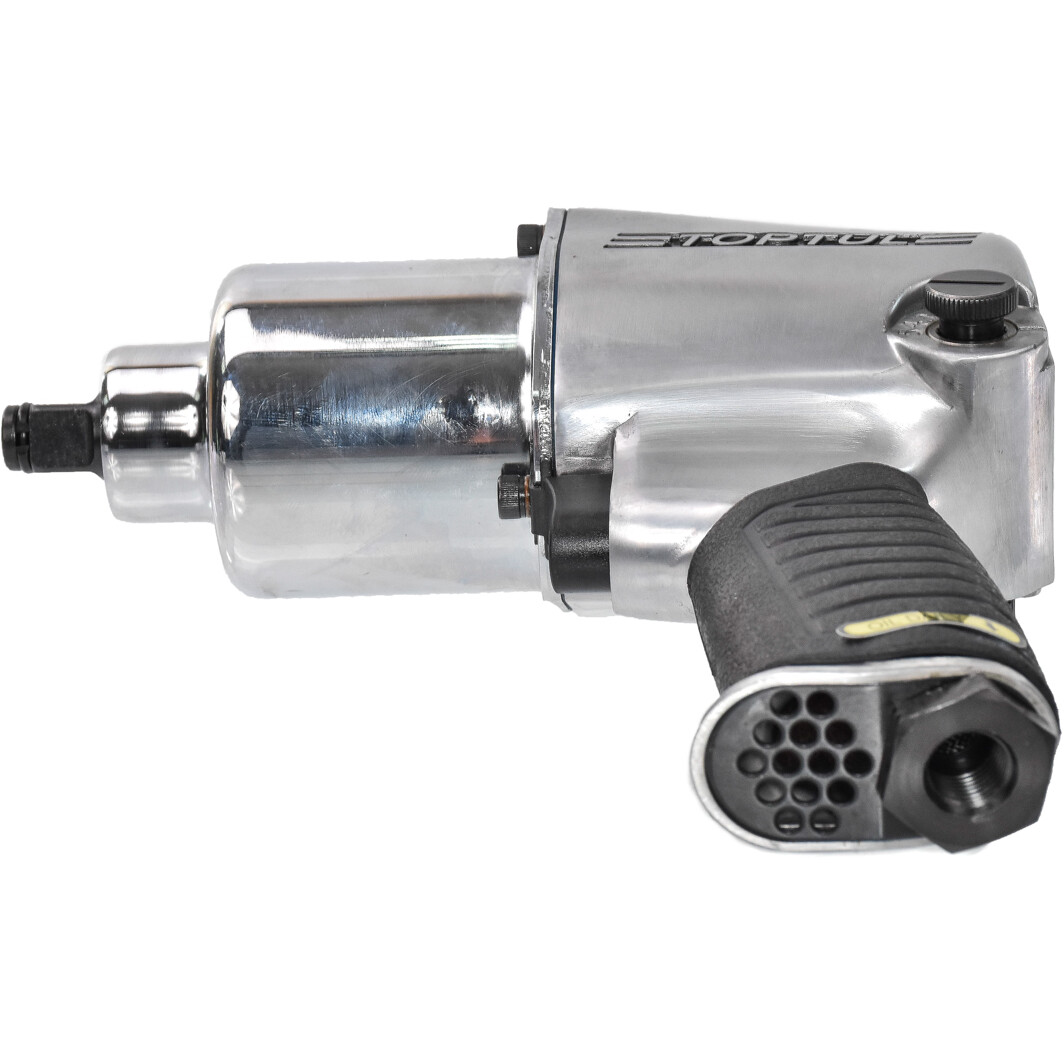 Пневмогайковерт TOPTUL KAAA1660 присоединительный квадрат 1/2", с максимальным создаваемым усилием 949N/m, и скоростью вращения 6500об/мин, с выводом воздуха из нижней части ручки и шумоглушителем.