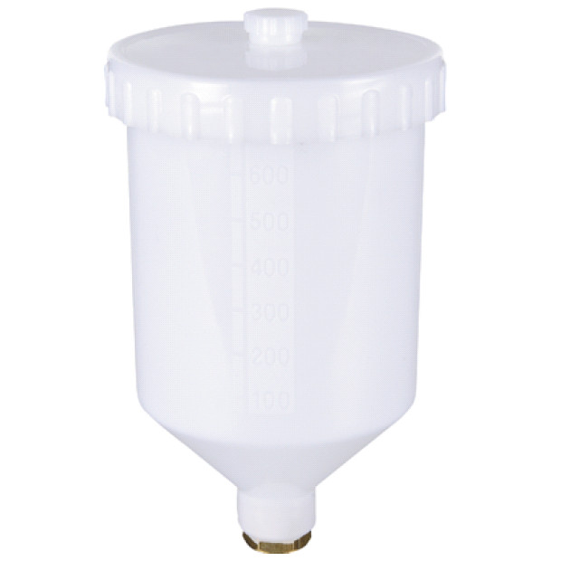 Бачок пластиковый для покрасочных пистолетов, емкостью 600 мл выполнен из пластика, позволяющего использовать большинство лакокрасочных материалов. Через стенки бачка виден уровень краски, что позволяет контролировать ее расход.