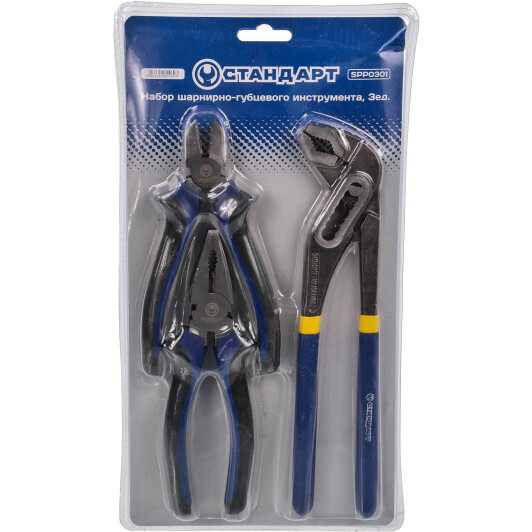 Набор шарнирно-губцевого инструмента, 3ед. (плоскогубцы, бокорезы, переставные плоскогубцы) СТАНДАРТ SPP0301. Используется для выполнения слесарно-монтажных работ. Каждый инструмент из набора отвечает всем требованиям современных мастеров.