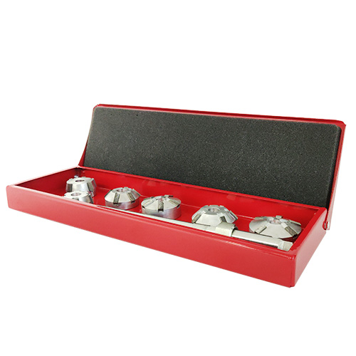 Набор состоит из режущего инструмента – фрез (шарошек), с различными диаметрами и углами, а также направляющего стержня (пилота). Набор фрез позволяет обрабатывать фаски седел клапанов, двигателей СМД-14, обеспечивая следующие углы, рекомендованные заводом изготовителем: