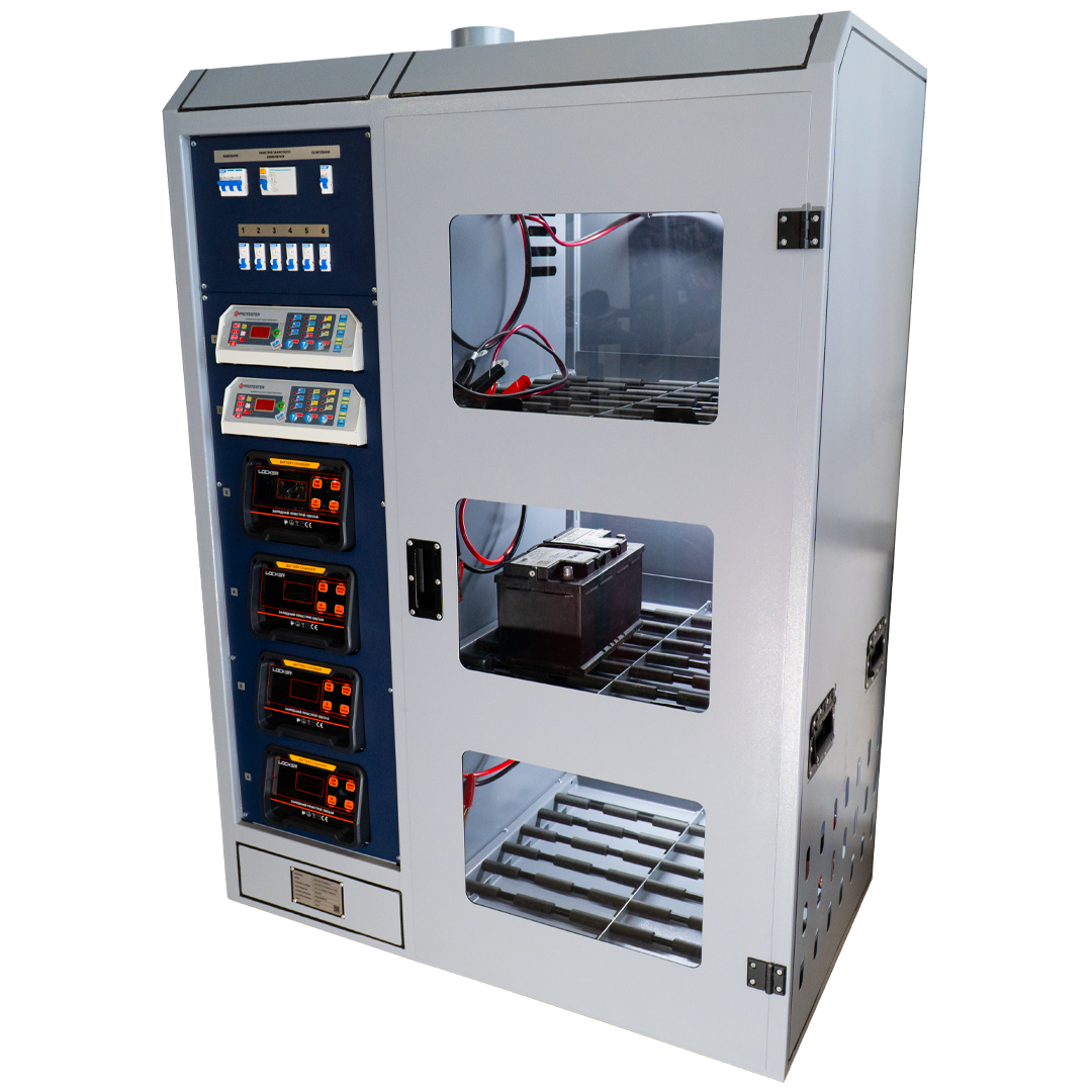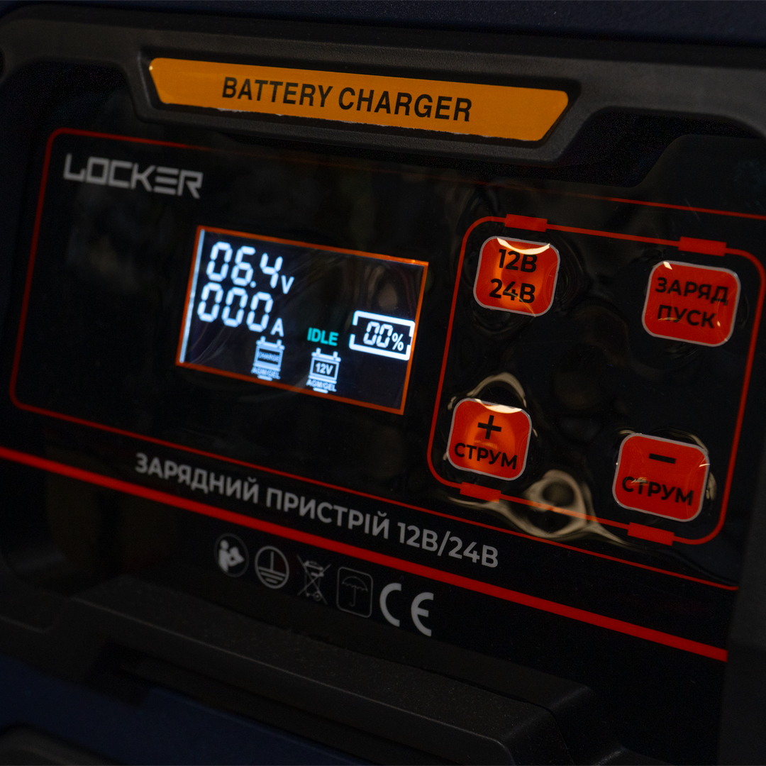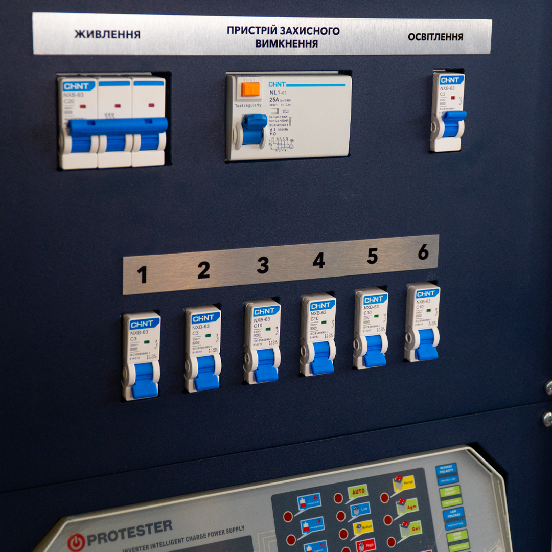 Шафа для заряджання акумуляторних батарей оснащена шістьма потужними інверторними зарядними станціями, що забезпечують надійне та ефективне заряджання акумуляторів напругою 12 та 24 В і ємністю до 400 А/г. Кожна станція працює з максимальним зарядним струмом до 30 А, має цифровий дисплей для відображення параметрів заряджання та оснащена системами захисту від перезарядження, короткого замикання, перевантаження і перегріву. Це рішення ідеально підходить для СТО та підприємств, де потрібно одночасно заряджати кілька акумуляторів.