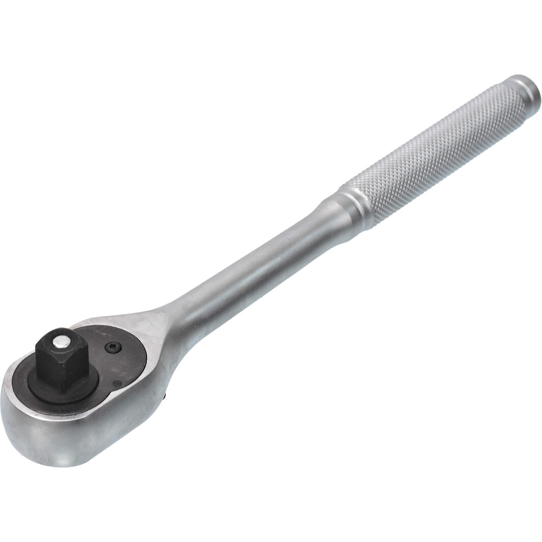 Бюджетная, но качественная трещотка с хорошим количеством зубов.На ручке есть насечки, так что скользить не будет.