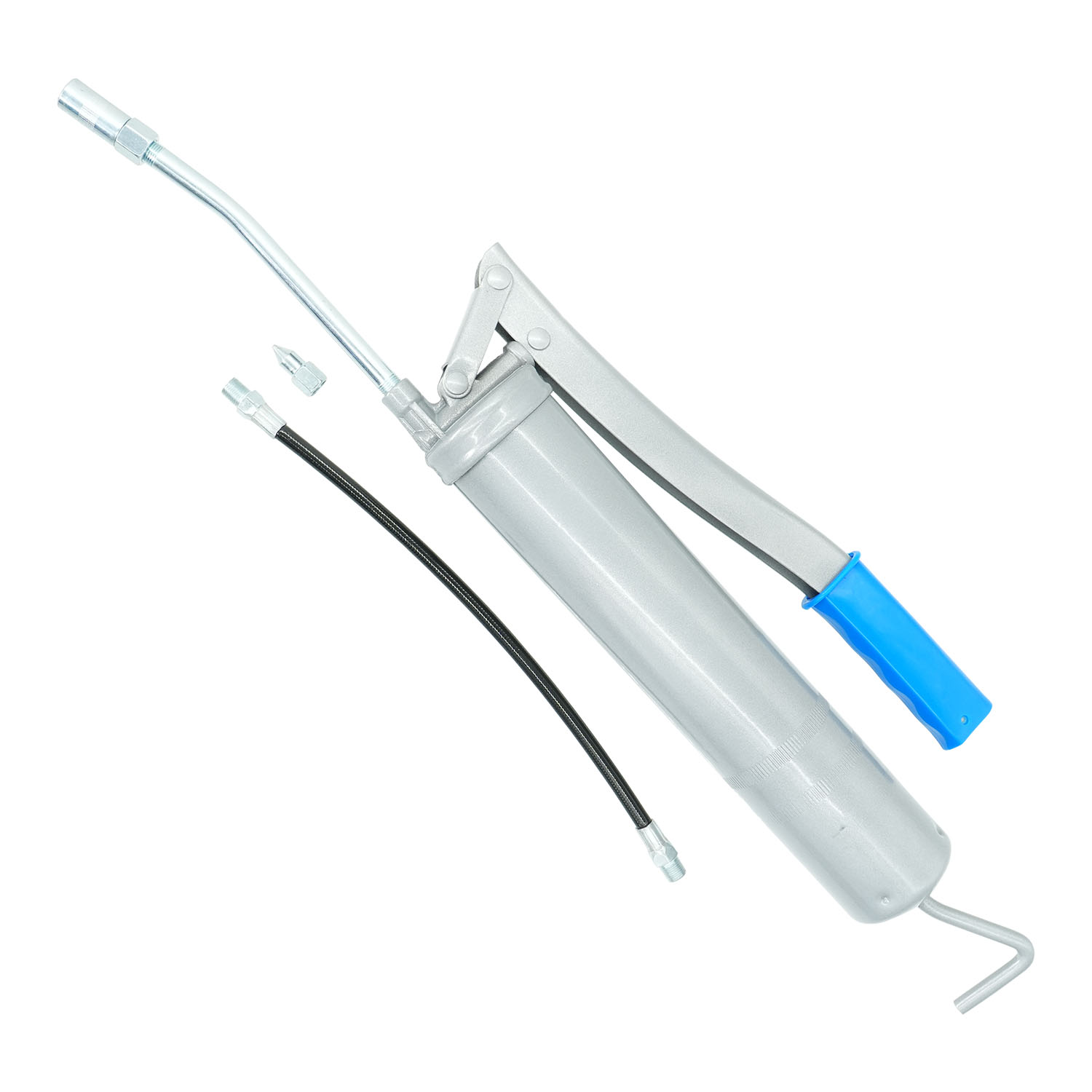 Шприц-маслянка з гнучким шлангом 400 мл STANDART GG400LM – зручний інструмент для змащування вузлів і механізмів у важкодоступних місцях. Оснащений гнучким шлангом, що забезпечує точну подачу мастила навіть під кутом чи у вузьких просторах. Місткість резервуара 400 мл дозволяє працюFFвати без частого дозаправлення. Корпус виготовлений із міцного металу, що гарантує довговічність та надійність у використанні.