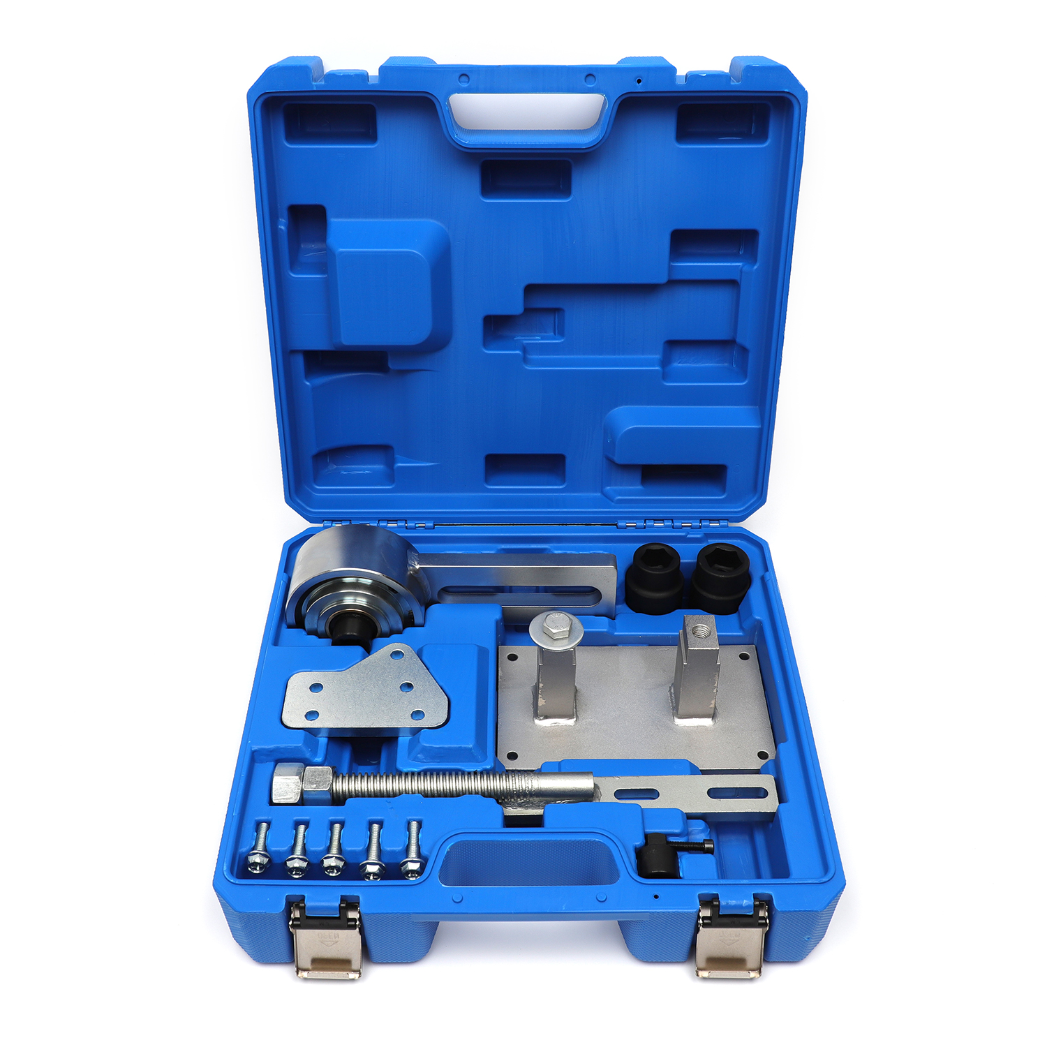 Набір для заміни шківа колінчастого вала Ford EcoBoost 1.0, 1.1 G.I.KRAFT GI-02-0001 — спеціалізований інструмент, призначений для демонтажу та встановлення шківа колінчастого вала на двигунах Ford EcoBoost 1.0 та 1.1. Забезпечує точність і безпеку виконання робіт, мінімізуючи ризик пошкодження деталей та скорочуючи час обслуговування.