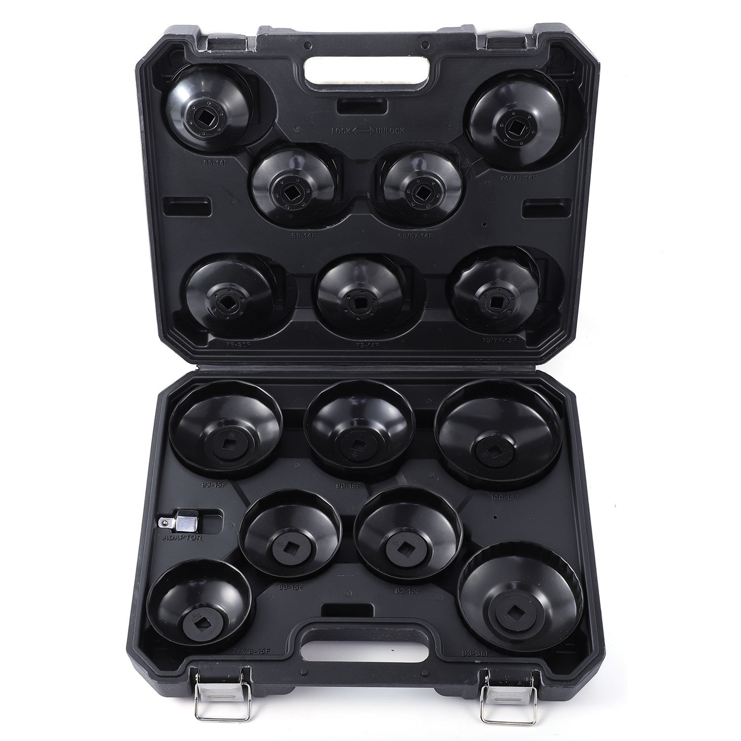 Комплект знімачів масляних фільтрів (кришки) G.I.KRAFT GI-02-0008 — професійний набір інструментів, призначений для швидкого та безпечного демонтажу та встановлення масляних фільтрів різних типів. Завдяки спеціальним насадкам він забезпечує точне прилягання до кришки фільтра, що мінімізує ризик пошкодження корпусу та спрощує процес обслуговування двигуна.