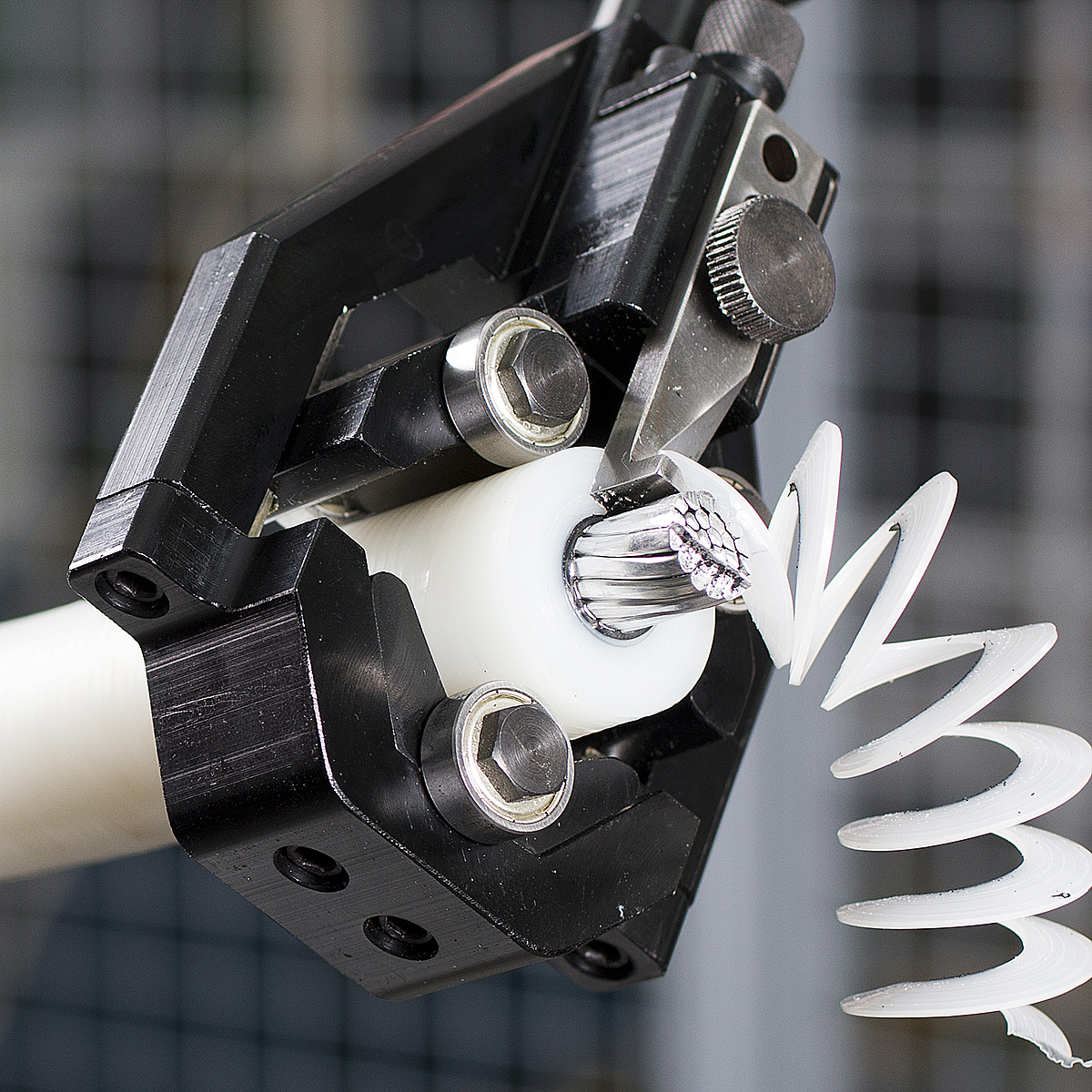 - Надійна фіксація кабеля: Інструмент оснащений 6 прижимними роликами, які забезпечують щільне утримання кабеля під час обробки. Фіксація здійснюється за допомогою обертання руків'я.