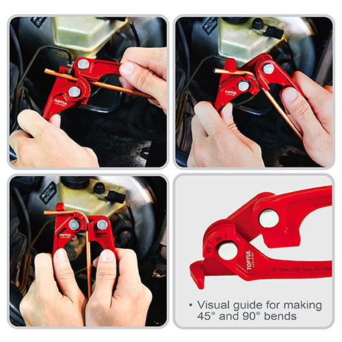Трубогинн підходить для згинання алюмінієвих, латунних, мідних та м'яких сталевих труб. Він ідеально підходить для згинання трубок гальмівної системи автомобіля, трубопроводів пального, систем кондиціонування та охолодження.