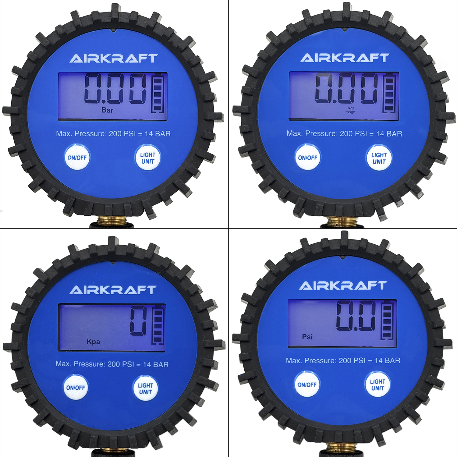 - Одиниці вимірювання: PSI, кПа та бар — користувач може вибрати зручну для себе одиницю вимірювання.